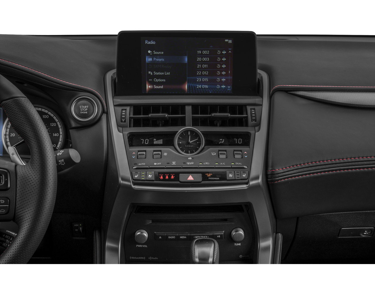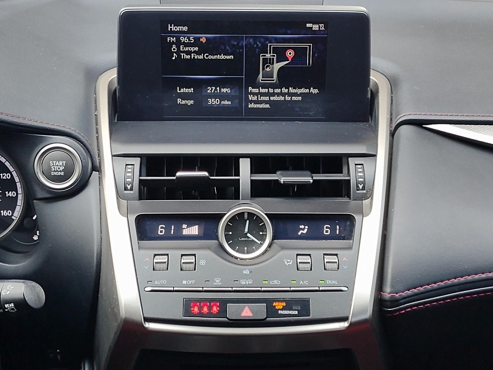 - Radio: AM/FM/CD Lexus Display Audio -inc: 8 speakers, Bluetooth® audio streaming from compatible devices and hands free w/improved voice recognition, full digital power amplifier (class D), integrated SiriusXM satellite radio receiver (90-day All-Access trial subscription included), Scout GPS link w/MapStream mode (complimentary for the first 3 years of ownership), USB/iPod control, home screen can be divided into 1-3 sections (customizable - HVAC, audio, navigation), 8" multimedia screen, enhanced second generation Remote Touch Interface (RTI) w/30 percent larger touchpad, Enform Service Connect w/one-year trial period extended to complimentary for the first 10 years of ownership, my traffic routes; preset frequently, MID data sharing; content from headunit displayed in MID (e.g, song information, NAV turn by turn directions, call info.), dynamic voice recognition, one-shot address entry, embedded voice recognition w/off-board based service; ability to choose voice prompt level (High/Low/Off) steering wheel control of onboard/offboard voice recognition, voice recognition guidance level, hint screens, Cache Radio w/ability to pause live AM/FM/HD Radio, hybrid data service, traffic and weather data provided via HD Radio (free while in HD Radio range), basic traffic maps, weather forecast, Siri Eyes Free mode or Google Assistant (iPhone 4S, iPhone 5/5C/5S), Apple CarPlay and Amazon Alexa
