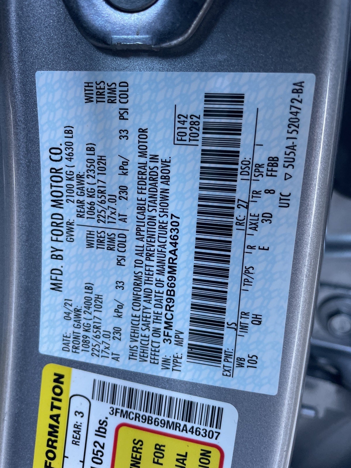 To check for open recalls please visit https://www.nhtsa.gov/recalls?vin=3FMCR9B69MRA46307#vin.