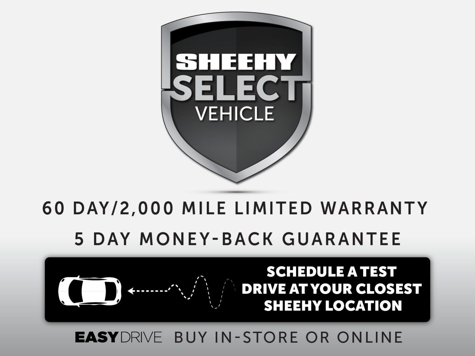 All our Sheehy Select vehicles come with a 125-point quality inspection, 60 day/2,000 mile warranty, a CARFAX vehicle history report, upfront clear Sheehy-It’s Easy Pricing and a 5 day/300 mile money back guarantee! And all our Vehicles pass both MD and VA state inspections, backed by a company that has been serving the Mid-Atlantic area for 60 plus years-so you know you’re getting an excellent quality vehicle!