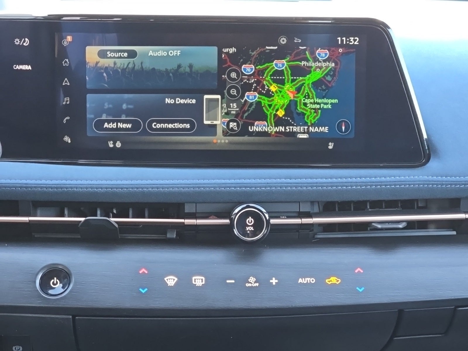 - Radio: Bose Premium Audio System w/AM/FM -inc: 12.3" color display w/multi-touch control, 10 speakers w/1 subwoofer, MP3/WMA playback, Bluetooth® streaming audio, speed-sensitive volume control (SSV), satellite radio pre-wiring, SiriusXM satellite radio w/advanced audio features, SiriusXM Traffic, SiriusXM Travel Link, NissanConnect EV featuring wireless Apple CarPlay, wired Android Auto, navigation and NissanConnect services, Bluetooth® hands-free phone system (w/voice recognition in English, French and Spanish), voice destination entry (VDE) and hands-free text messaging assistant